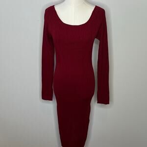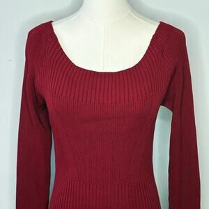 Jason Wu Collective Off the Shoulder Back Tie Maroon Sweater Dress Womens Medium