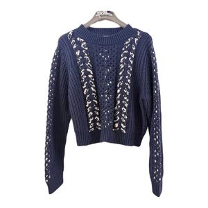 Jason Wu Collective Woven Detail Sweater Crew Neck Dark Blue Size Medium