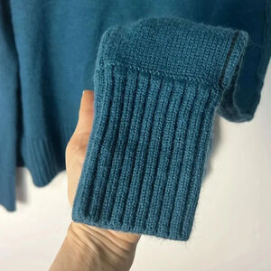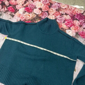 A relaxed cut and chunky ribbed trim maximize the cozy and versatile appeal of this wool-blend sweater by Jason Wu Collective. Teal knit (70% Acrylic, 30% Wool). Sweater. Mock neck. Long sleeves. Pull on. 22.5" from shoulder to hemline. Imported. Very good used condition size Small
