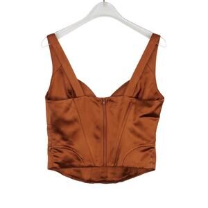 Jason Wu Copper Brown Burnt Orange Corset Top. Satin Sexy Sleeveless V-Neck Fitted Tank Top, Plunge Neck Going Out Top