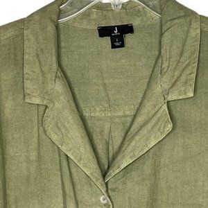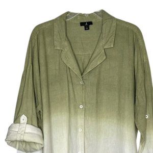 Jason Wu Dip Dye Linen Button Front Shirt - Olive - L