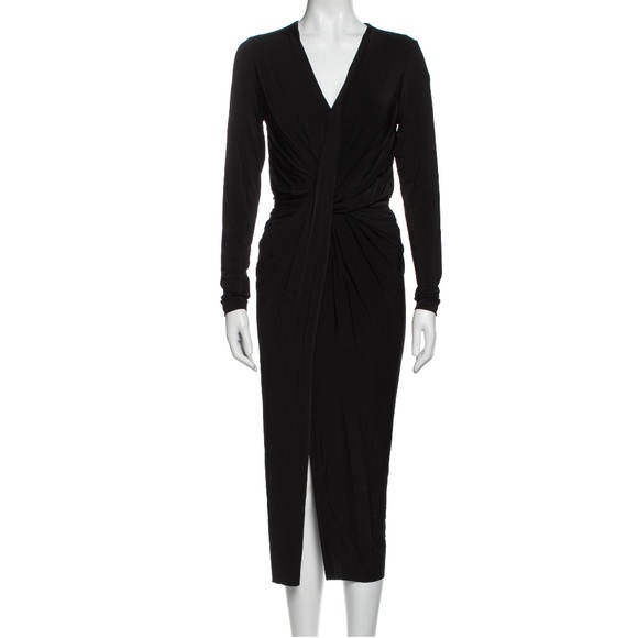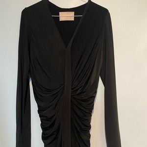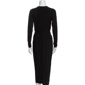 Jason Wu Sheath Dress. Black, Pleated Accents, Long Sleeve with V-Neck.