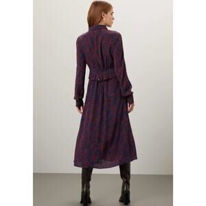 Jason Wu Dress Womens 6 Blue Red Floral Chiffon Shirt Collared Midi Tie Neck