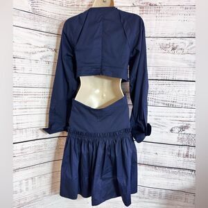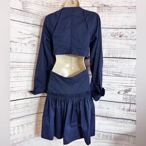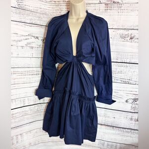 Jason Wu Dress Womens Sz S Poplin Navy Deep V Cutout Long Sleeves Mini Cotton