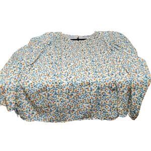 Jason Wu Eloquii Womens Size 22 XL Blouse White Ditzy Floral Flowy Top Puff Sleeve