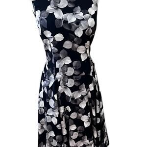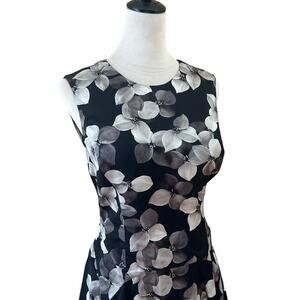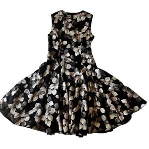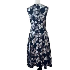 Elegant and timeless, this Jason Wu sleeveless midi dress features a stunning black base with soft silver and grey floral print. The fitted princess seam bodice flows into a full circle skirt for a flattering, feminine silhouette. Perfect for weddings, cocktail parties, or special events.