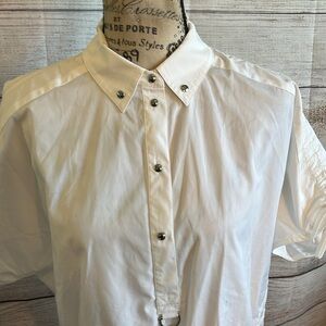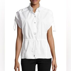 Jason Wu Gray Top Short Sleeves Drawstring Half Button Cotton White Size 4