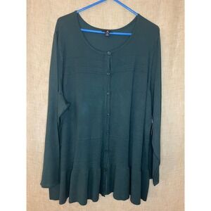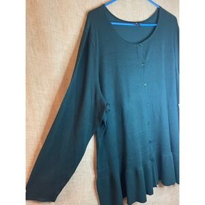 Keywords: Jason Wu, cardigan, sweater, button down, green, plus size, 3X, ruffle hem, knit cardigan, womens cardigan, long sleeve, casual cardigan, dressy cardigan