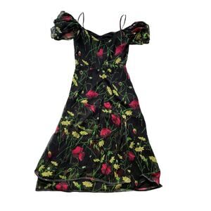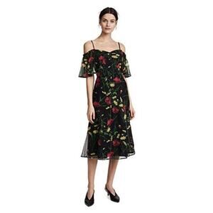Jason Wu Grey Silk Chiffon Off Shoulder Dress Floral Black Multi Midi 2 GUC