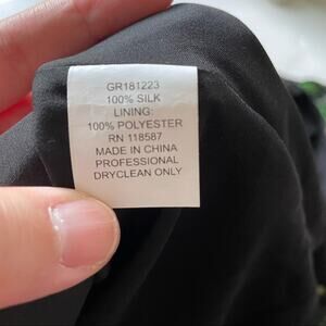 Silk chiffon Flutter overlay Sweetheart neckline Floral print Midi length V neck Short sleeves Hook-and-eye at back Hidden zip at back Open back Lined Shell: 100% silk Lining: 100% polyester