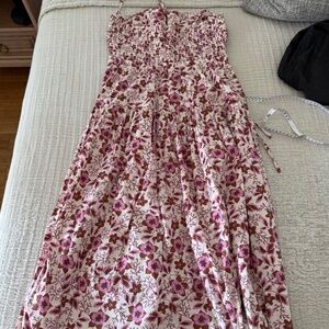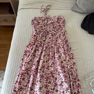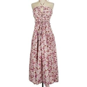 Jason Wu Halter Strapless Floral Smocked Midi Dress Pink Brown Size Small