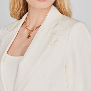 Jason Wu Ivory Cream Linen Embroidered One Button Fitted Blazer
