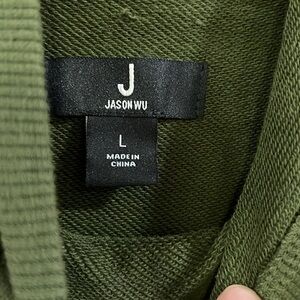 Embrace a minimalist style with the Jason Wu Green hoodie sweatshirt, featuring a relaxed fit and ribbed cuffs and hem. This solid green sweat shirt is crafted from a soft knit 80% cotton material, offering both comfort and versatility for casual wear.
