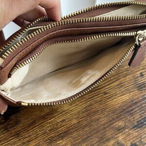 Jason Wu Leather Wristlet Double Wallet Strap Cognac Brown Tan