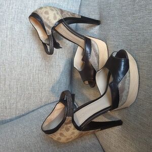 Elevate Your Style and make a statement with these Jason Wu peep toe ankle strap platform heels crafted from lizard textured leather.