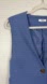 Long line sleeveless vest in a slate gray/blue colorway features a single button front closure. Button is a tortoiseshell inspired look in a irregular shape to add that extra note of interest. Vest is fully lined and has 5 inch side slits. Large belted back feature helps define the waistline.