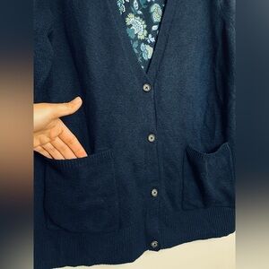 Jason Wu Mixed Media Cardigan Sweater Floral Marine Blue Women Size 1X Pockets