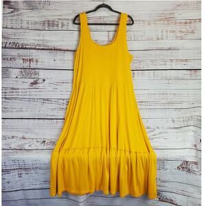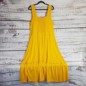 Jason Wu Mustard Yellow Ruffle Midi Dress Size XL Cottage Whimsy Style.