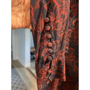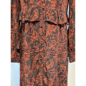 Jason Wu Navy Red Floral Printed Long Sleeve Shirt Dress Size 10