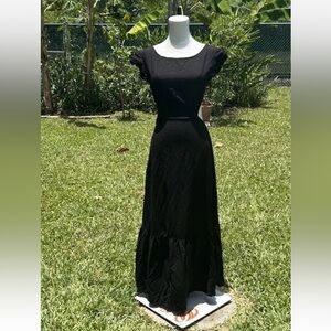 Jason Wu Open Back Linen Blend Tiered Hem Midi Sundress Black Flutter Sleeve M