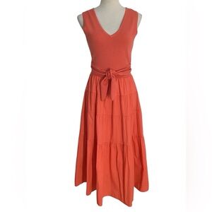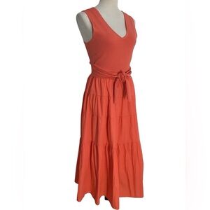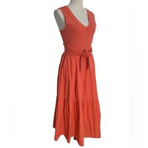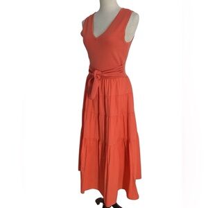 Jason Wu Orange Knit Top Tie Detail Tiered Sleeveless Midi Dress
