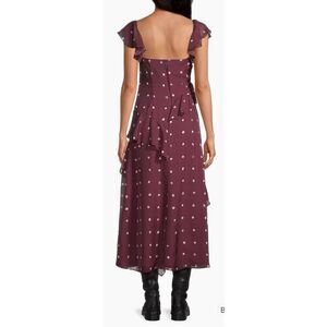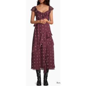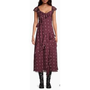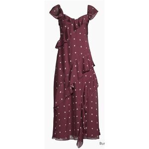 Jason Wu Paint Dot Silk Chiffon Midi-Dress in Burgundy Multi NWT Size 12