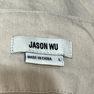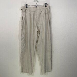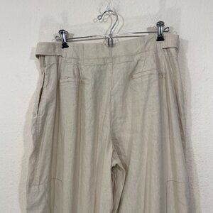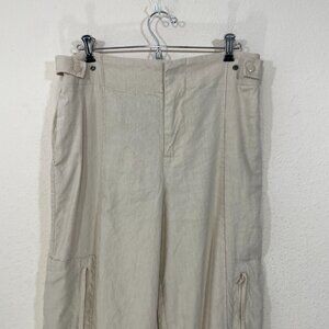 Jason Wu Pants Women's Large Wide Leg Linen Blend Beige Cargo Pockets High Rise