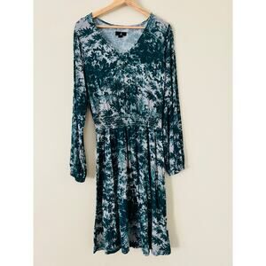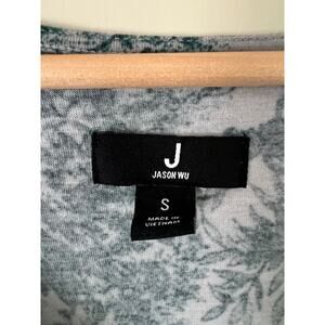 Jason Wu Printed Toile Jersey Dress Small Green 3/4 Sleeve Smocked Waist