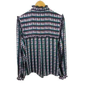 Jason Wu SZ 6 Striped Plaid Ruffle Blouse Cactus Rose Multi As Seen On TV $450
