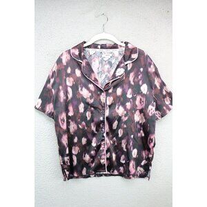Jason Wu Short Sleeve Button-Up Satin Pajama Set-Medium-Drawstring-Pockets