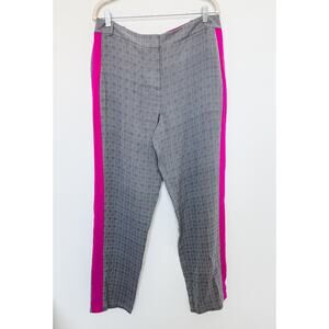 Jason Wu 100% silk trousers in gray plaid with bold hot pink side panels. High-rise with a tailored silhouette and full lining. No visible flaws. Excellent condition. See all photos for details.