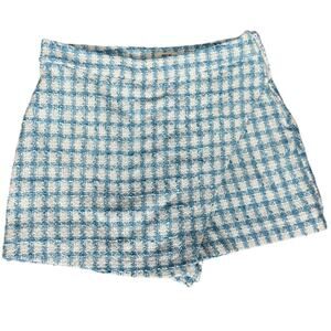 Jason Wu Size 10 Boucle Tweed Skort Blue White Windowpane Plaid Coastal Preppy