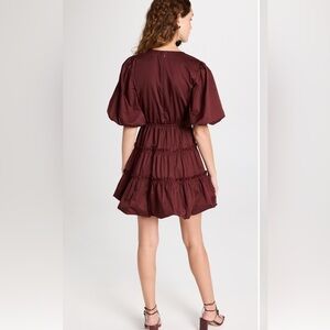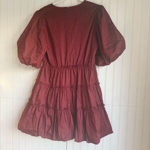 Jason Wu Size 10 Burgundy Wine Balloon Sleeve Tiered Mini Dress