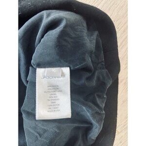 The Jason Wu Sleeveless Peplum City Sleeveless Twisted Knot Knit Top in black medium is a stylish and versatile blouse suitable for various occasions such as casual outings, formal events, work, and business meetings. Featuring a flattering peplum hem and a unique twisted knot detail at the neckline, this top is made from a comfortable knit fabric of 95% polyester and 5% elastane. The sleeveless design with a V-neckline adds a touch of elegance, making it a perfect choice for all seasons. Ideal for those looking for a chic and sophisticated addition to their wardrobe.