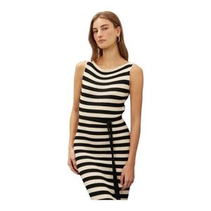 Jason Wu Striped Knit Midi Dress Sleeveless Black and Ivory Cotton Blend Small
