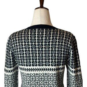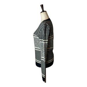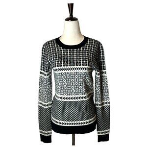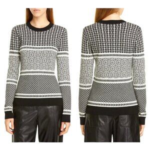 Jason Wu Sweater Womens Small Black Ivory Wool Knit Crew Neck Fair Isle Pullover