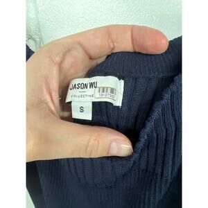 Jason Wu Sz small s Navy Blue Knit Off The Shoulder Bow Tie Back Sweater Top
