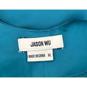 Jason Wu Teal Satin Midi Ruched Slip Dress Large Wedding Guest Event Cocktail