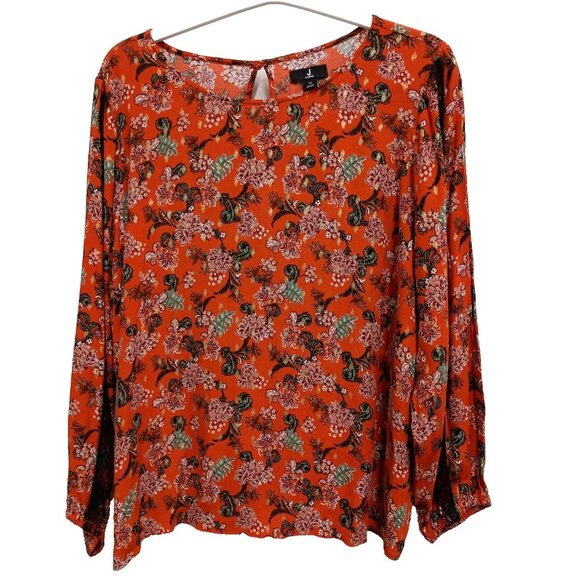 Jason Wu Top Womens Size 1X Orange Lace Trim Floral BOHO Cottage Long Sleeve