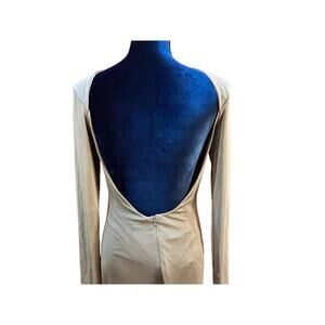 Jason Wu Dress, Beige, Long Sleeve with V-Neck, and Concealed Zip Closure at Back.