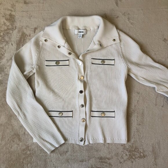 Jason Wu black and white button-up blouse with a touch of mob wife style.