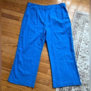 Jason Wu Women’s Linen Blend Vibrant Blue Wide-Leg Pants Braided Detail Size 12
