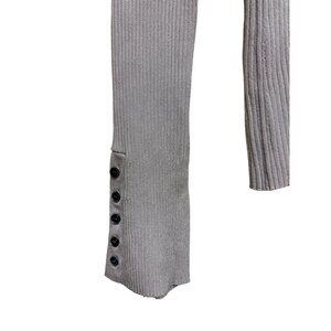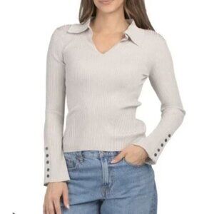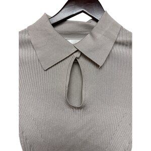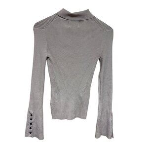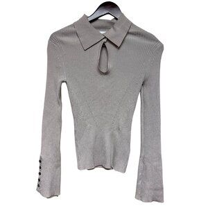 Jason Wu Women's Top Knit Collared Ribbed V-Neck Keyhole Bell Sleeve Small
