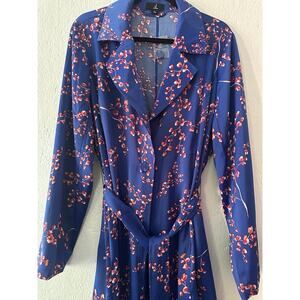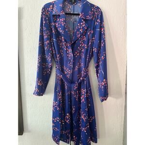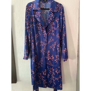 Jason Wu Woven Blue Printed Floral Cherry Blossoms Trench Coat Women’s Large