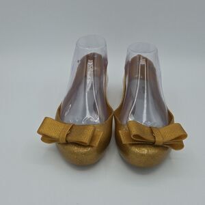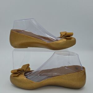 Jason Wu X Melissa Gold Glitter Bow Jelly Ballet Flats Women's SZ 7 Loafers EUC