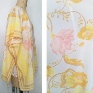 Jason Wu Yellow Floral Tunic Top Kimono Chiffon Scarf Cami Cover Up, One Size