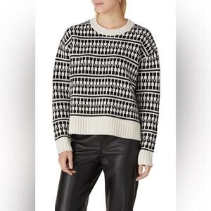 Jason Wu black white knit graphic pullover crewneck sweater MEDIUM