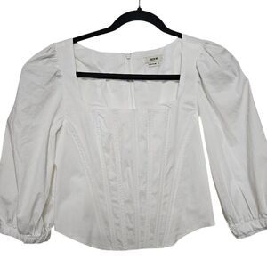 Excellent pre-loved condition Jason Wu square neck fluffy sleeves corset blouse. Very clean condition size small.