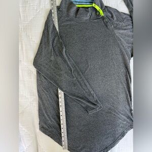 • Long sleeves, curved hem with side slit