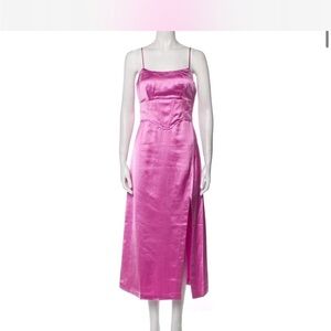 This sleek and sophisticated satin slip midi dress from Jason Wu is a timeless wardrobe essential. The square neckline and slit add a touch of sexiness, while the fluid fabric flows beautifully. This dress is perfect for any special occasion, from a night out to a formal event.